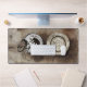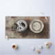 La mascotte laineuse primitive emblématique de l'Université mythique de Beringia sur un casque de football. A côté, le sceau officiel de l'école peint sur un tambour à main, ou tambour de chaman, commun à de nombreuses cultures en Sibérie et dans le nord de l'Amérique du Nord. Le sceau présente un dessin simple et marron d'un mammouth laineux avec un texte, "University of Beringia", "ESTD 2000 BCE", et la devise de l'école : "TREAD LÉGÈREMENT SUR LA TERRE". L'image a un aspect primitif - après tout l'école a été fondée il y a 2000 ans, bien avant les matériaux et imprimantes modernes. Les deux sont superposées à l'équation numérique d'une fourrure de caribou (rennes). Customisez en ajoutant votre propre texte. Beringia est le nom donné au pont terrestre de Béring et les régions de l'Alaska et de la Sibérie qui la bordait. Ajoutez votre propre texte supplémentaire. Les programmes de l'U. de B en écologie arctique, en gestion de la faune et en génie des microlames lithiques sont inégalés. Allez Mammoths !
