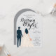 The Brittney Arched Double Sided Wedding Invitation is fully customizable. Part of the Until Forever Collection, this elegant invitation features a custom illustration graphic of a wedding couple styled to resemble you and your partner. You can choose the paper, the fonts, the colors, and the wording for your invitation. We will design for you a custom couple graphic, monogram, and a wedding icon(custom graphic) that you can use across your entire wedding stationery suite. This invitation features a timeless design and just enough frills in the font to be romantic and elegant. Without a lot of extra flowers or accents this invitation makes a statement that your event is going to be classic, formal, and sophisticated.