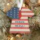 Un laide de Noël ? Pas tout à fait, mais les Patriots américains de toutes les formes, tailles, couleurs et persuasions aimeront CET ornement spécial en forme de T-shirt acrylique pour le drapeau et message américain ("Dieu bénisse les Etats-Unis") sur le devant & message personnalisé sur le dos! Accrochez-vous à l'arbre de Noël, utilisez-le pour le ventilateur ou la légère traction, ou pour n'importe quel endroit où vos jus de fruits créatifs mènent.