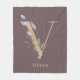 Lettre V monogramme floral. Lettre V en texture brun doré accentué de feuilles verts composés d'aquarelle, fleurs de fleurs et poussière d'or. Personnalisé avec nom dans la police correspondante.