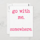 NewParkLane - Carte postale, avec une citation romantique "Allez avec moi. Quelque part.", dans un rose chaud, police de machine à écrire.