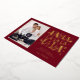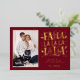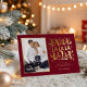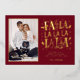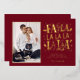 Frappez une note vraiment joyeuse avec cette carte photo festive unique qui chante la joie des fêtes ! Le riche fond rouge bordeaux sert de scène au message "FA LA LA" surdimensionné et ludique, qui brille de mille feux en feuille d'or luxueuse. Des notes de musique éparpillées et des icônes festives, également en feuille d'or, encadrent magnifiquement votre photo de famille, faisant de ceci une annonce amusante, vibrante et inoubliable.