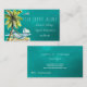 Palmier de style rétro vintage, chaise longue, voiliers et oiseaux vacances d'été scène de plage sur une eau comme bleu turquoise arrière - plan faisant un audacieux carte de visite d'agence de voyage coloré. — Remplissez vos détails à l'avant et à l'arrière !