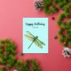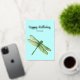 Une peinture originale de libellule imprimée en or sur cette carte d'anniversaire est si belle face à cet arrière - plan coloré. Il est prêt pour vos touches personnelles.