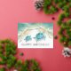 Ces cartes d'anniversaire de plage présentent des tortues de mer couleur aquarelle le long d'un bord de mer de vagues tueuses bleu océan. Un joli choix pour les thèmes côtiers et balnéaires. L'aquarelle unique de Victoria Grigaliunas de Do Tell A Belle.