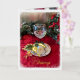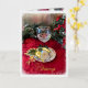 Les bénédictions de Noël sont souvent comptées avec nos proches, autour de la table. Cette photo d'un verre scintillant sur une table décorée pour les vacances donne une impression d'hospitalité et d'élégance. Choisissez de la feuille d'argent ou d'or pour montrer les accents brillants sur les feuilles saints et une boisson pétillante. Laissez votre lettre de Noël à l'intérieur avec un salut de fête. Bénédiction !
