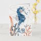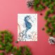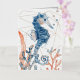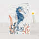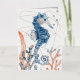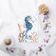 Un joli cheval de mer, du corail et des algues, avec un arrière - plan géométrique doré, et le poème : Dansez avec les vagues, bougez avec la mer. Laissez le rythme de l'eau libérer votre âme.