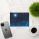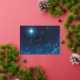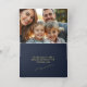Joyeuse carte de Noël avec une belle étoile de Noël. Véritable feuille sur le devant. Texte personnalisé à l'avant et à l'intérieur de la carte. Ajoutez la photo désirée à l'intérieur. Beaucoup d'espace pour votre salutation personnelle. Un appel majestueux. Belles couleurs bleu et or. Utilisez le modèle pour créer votre propre carte de papier photo de Noël.