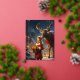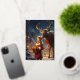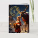 Vous cherchez une carte personnalisée à envoyer avec votre cadeau de Noël? Notre carte pliante Reindeer Special Delivery vous permet de personnaliser l'avant avec votre nom et le message intérieur. Il présente une jeune fille habillée en rouge qui livre un cadeau de Noël avec l'aide d'un ami de rennes. Ils se tiennent dans la neige dans une ville illuminée la nuit tandis que les habitants marchent dans les rues. Le timbre à l'avant est fait de feuille d'or pour cette touche spéciale.
