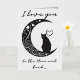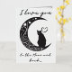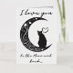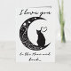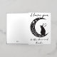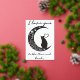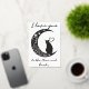 Cette carte de charme capte l'essence du romantisme à travers son design minimaliste, avec une silhouette épurée d'un chat contemplatif perché sur une lune croissant. La lune elle-même est ornée de tourbillons, de coeurs et d'étoiles délicats, créant une atmosphère de rêve qui incite le spectateur à regarder un peu plus longtemps. L'utilisation d'une palette monochrome aux teintes subtiles améliore la silhouette, ce qui en fait un choix élégant pour un amoureux de simplicité et de grâce féline. L'ajout de l'expression "Je t'aime à la Lune" pourrait faire de ce design un signe idéal d'affection pour un être cher, exprimant des sentiments profonds avec une torsion cosmique. Le sentiment est universellement compris, mais présenté de manière unique, ce qui fait de cette carte postale une façon parfaite de transmettre l'amour lors d'occasions spéciales ou tout simplement comme une surprise douce et inattendue. L'humeur sereine du design le rend également adapté à l'encadrement, servant de rappel intemporel d'affection.