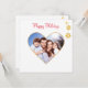 Coeur familial personnalisé et fleurs dorées sur la carte de voeux des Fêtes blanches. Idéal pour Noël et les voeux du Nouvel An. Le texte peut être personnalisé pour d'autres événements.