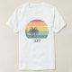 Get into the ultimate relaxed spirit with this retro-style graphic T-shirt featuring a classic tropical beach sunset scene. The design captures the idyllic view of silhouetted palm trees standing against a striped background of warm, vacation-inspired colors (reds, oranges, yellows, and teal). The whole scene is contained within a circle with a white border, and the bold, bubble-style text "OFF" suggests the moment when you fully disconnect and embrace holiday time. The vintage aesthetic and black background create a trendy, nostalgic look, perfect for travel, summer holidays, relaxation concepts, or anyone dreaming of a tropical getaway. This graphic embodies summer vibes and escape.