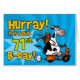 " Hurray ! c'est votre soixante-et-onzième B-jour !" vache à scooter d'amusement sur la carte de voeux spécifique à l'âge d'anniversaire