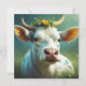 Vache blanche mignonne aux cornes et fleurs à l'art de l'air.