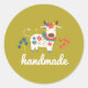 Autocollant étiquette de produit artisanal rond avec illustrations de vaches et de fleurs. Illustrations de fleurs et de formes simples dans un style scandinave cosy.