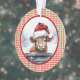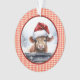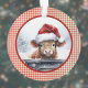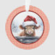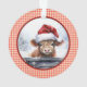 Ce charmant ornement de Noël est orné d'une jolie petite vache en montagne portant un chapeau de Père Noël par jour enneigé. La vache est découpée en rouge et en vert, et l'image est fixée contre une bordure en vichy rouge chic de ferme. Les vaches Highland, avec leurs cheveux longs et leurs cornes distincts, sont originaires des hautes terres écossaises, et elles sont la plus ancienne race de bétail enregistrée au monde.