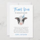 Carte de remerciements d'anniversaire d'enfant rustique avec aquarelle illustration de vache bébé avec un casquette de fête bleu. Le texte par défaut remercie les invités d'être venus à la fête et pour les cadeaux. Le texte dit "merci moo d'être venu à ma fête !"