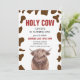 Vache Sainte ! Invitation de fête d'anniversaire avec une vache aquarelle et une impression de vache et un dos à carreaux rouges.