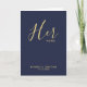 'Her Vows' Minimalist Mariage Vows Card comporte le titre 'Her Vows' en style de police de script moderne or avec des détails mariages en style de police sans serif sur arrière - plan bleu marine. Remarque : Les détails du papier sont simulés dans l'illustration. Il n'y aura pas de métal sur ce produit.