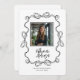 Célébrez votre graduation avec style avec notre Faire-part d'études supérieures Wavy Border Bow Black Photo. Cet élégant Faire-part est doté d'une bordure ondulée élégante et d'un design archet chic, encadrant parfaitement votre photo préférée du diplômé. Personnalisez-le avec des détails pour créer un souvenir mémorable qui donne le ton pour une graduation inoubliable.