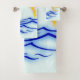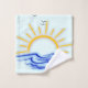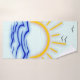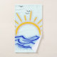 Cette oeuvre représente une variété d'oiseaux qui semblent flotter sans poids en vol au-dessus des éclats de soleil et des vagues bleues brumeuses de l'océan sur une toile azurée paisible couleur cyan-brouillard, produisant une atmosphère positive et onirique et aboutissant à un délicat ensemble de serviettes de bain à l'accent.