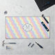 Des lignes de rouleaux font un motif simple et amusant dans un arc-en-ciel de couleurs pastel du rose à la lavande créant un joli motif pour le printemps. Customisez le monogramme dans le cercle avec votre initiale pour créer un tapis de bureau unique pour votre travail ou espace de jeu.