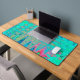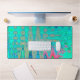 Ce Tapis de bureau coloré Cool présente un Super bleu turquoise rétro et des couleurs arc-en-ciel et des ondulations atomiques avec des accents vert Aquamarine, Rouge, Jaune et Lime. Le résultat est un design coloré, super et abstrait que vous aimerez !
