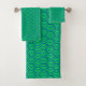 Ce kit de serviettes a un design art déco de lignes courbes bleues en forme de triangle sur un champ de vert répété à travers le design. Vous voulez une couleur différente ? Message-moi.