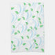 Serviette de cuisine avec feuilles verts et tourbillons bleus. Serviette design simple.