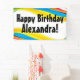 Arc-en-ciel de tourbillons colorés et de vagues. Ajoutez votre nom à ce panneau de bannières à thème d'anniversaire personnalisé. Idéal pour une fête d'anniversaire à tout âge, pour les enfants ou les adultes. Faites-le maintenant et commandez sans minimum. Grande fête d'anniversaire de bureau ou décoration pour l'invité d'honneur.