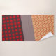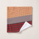 Cet ensemble de serviettes présente un design moderne du milieu du siècle avec des lignes ondulées orange sur un arrière - plan or, des cercles rouges sur un arrière - plan marron et un arrière - plan gris. Si vous voulez le même design avec des couleurs différentes, envoyez-moi un message.