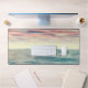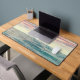 OEuvre numérique de vagues aléatoires et chaotiques dans une mer de turquoise aux tons chauds.