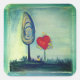 Beau et original, autocollant de Saint Valentin avec peinture d'un coeur et d'un arbre sur un arrière - plan bleu. Conception géniale pour toutes les occasions - amour, anniversaire, fiançailles et autres.