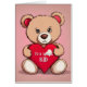 Un mignon ours en peluche caricaturé tenant un coeur rouge sur un arrière - plan mauve pour la Saint-Valentin d'un enfant.