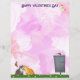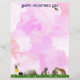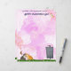 A pink swirly stationery with some butterflies, cats, a mailbox and a dragonfly on the front. On the back more cats, and bees. Easily update text