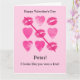 Valentines Jeu rose avec lèvres et coeurs Carte