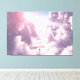 Une montgolfière solitaire flotte à travers le canyon rose pâle entre des nuages imposants. Le soleil, bas dans le ciel pastel, brille derrière le bord des billards, envoyant des flots de lumière vers le spectateur.