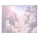 Une montgolfière solitaire flotte à travers le canyon rose pâle entre des nuages imposants. Le soleil, bas dans le ciel pastel, brille derrière le bord des billards, envoyant des flots de lumière vers le spectateur.