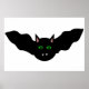 Cette affiche présente une chauve-souris vampire déplaisante avec le visage d'un chat. La chauve-souris vole avec des ailes tendues et a les yeux verts maléfiques d'un chat déplaisant et quelques crocs blancs effrayants. Cette chimère déplaisante est la créature parfaite pour une Halloween hantante.