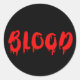 Un autocollant pour Halloween disant "sang" dans une police rouge vif sur un arrière - plan noir conçu pour ressembler à du sang coulant. Ce serait parfait pour toute fête à thème horreur ou vampire de sceller les enveloppes sur votre invitation ou à boire ou à manger étiquette.