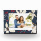 Élégant bloc photo de gardien de vacances présente votre photo préférée contre un arrière - plan bleu marine orné de fleurs d'hiver en ivoire pâle et de baies rouges. Personnalisez avec votre légende personnalisée ; nous l'aimons avec vos noms et l'année.