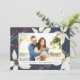 Envoyez des voeux de Nouvel An à vos amis et à votre famille dans le style chic avec nos cartes photos élégants. Votre photo est bordée de blanc, sur un arrière - plan bleu marine fumé orné de fleurs crémeuses de vanille et de baies rouges. Personnalisez avec votre salutation personnalisée (avec "Bonne Année") et votre nom de famille ou votre nom personnel.