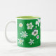 Une jolie variété de fleurs blanches sur un arrière - plan vert mélangé, avec le texte, je vous aime maman écrit en blanc, est imprimé sur des tasses personnalisées. Les mots peuvent être facilement customisés sur la forme modèle. Bonne idée cadeau pour la fête des mères, l'anniversaire de maman, et plus encore. Merci pour faire du shopping à CherylsArt sur Zazzle.