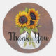Vase de tournesol sur un autocollant "Merci" brun rustique.