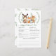 Personnalisez cette jolie carte de jeu de prédictions et de conseils pour bébé boisé coloré avec vos propres mots facilement et rapidement. Cette conception présente l'illustration de verdure rustique aquarelle, feuillage feuille et d'adorables animaux forestiers : renard, cerf, écureuil, lapin, orignal et raton laveur.