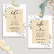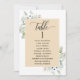 Aidez vos invités à trouver leur table avec cette élégante carte de plan de séjour verdoyante avec les noms des invités. Cadre avec noms d'hôtes dans le beige tan et délicat détails d'aquarelle de verdure. Cartes recto-verso pour que les clients puissent chercher leur nom à l'avant ou à l'arrière. Libérez de l'espace tout autour en vous donnant la liberté d'utiliser des clips ou un trou de perforation pour accrocher des écrans, ou d'utiliser le support/cadre de table. Détails de calligraphie manuscrite moderne. Verdure dans un beau mélange de tons vert, bleu, beige, beige et terre cuite. Également disponible avec cadre en blanc, en bleu brouillard et en vert. Ayez tous les numéros de table dans la même couleur ou mélangez les couleurs selon le thème de couleur de votre événement. Une partie de notre collection "Elegant Greenery Eucalyptus Mariage and Events" avec une variété de produits de coordination disponibles.