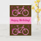 Vélo rose avec notes musicales sur marron. Joyeux anniversaire. J'espère que ton anniversaire est amusant.