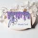 Créez des vibrations spéciales de bonheur éternel pour votre mariage de printemps avec ce vélo violet et ces pétales de vigne de wisteria tombant du bord supérieur et le vélo violet à gauche. Un texte spécial "Merci".