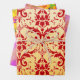 Le rouge écarlate classique Damask aux dimensions audacieuses sur la crème, quelques lustres feuilles lavande, et un regard sur la source des étincelles !