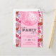Apportez les vibrations rétro à votre fête d'anniversaire ! Facile à customiser avec les détails de l'événement. Doté d'une boule disco rose étincelante et de graphiques roses et rouges mignons (fraises, bretzels, gaufres et glaces).